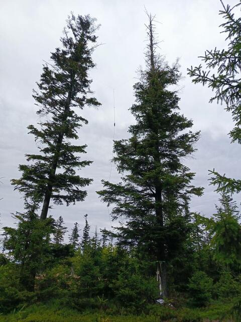 anténa v korunách stromů